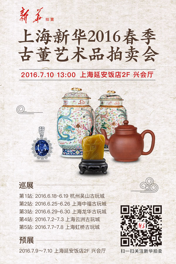2016年7月2日,上海新華2016春季古董藝術(shù)品拍賣會巡展云洲站在上海云洲古玩城8樓會展中心拉開帷幕。珠寶、文玩、瓷器、紫砂等多種古董藝術(shù)精品呈現(xiàn)在藏友面前。云洲站巡展日期為7月2日至3日。