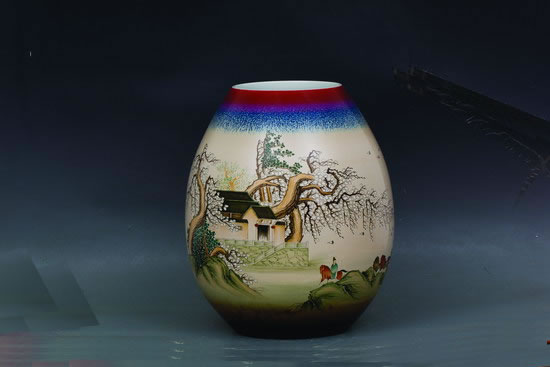 此次展會的展品均由楊曉華陶瓷藝術館提供,楊曉華先生現(xiàn)為中國工藝美術師,擅長工筆粉彩山水、人物、花鳥畫,其作品清新、典雅,瓷瓶《樂在其中》、《嬰戲圖》分別獲得第六屆工藝禮品瓷博覽會“中藝杯”金獎和首屆中國藝術博覽會金獎。