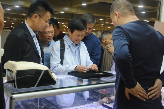 云洲古玩城總經(jīng)理吳中澤(右三)接待紹興市柯橋區(qū)委員會(huì)主席孟柏干(左三)、紹興市柯橋區(qū)人民政府副區(qū)長(zhǎng)錢勇軍(左二)、越國(guó)文化博物館紹興縣博物館總監(jiān)梁志明(右二)