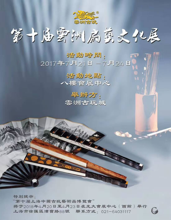 由云洲古玩城舉辦的“第十屆云洲扇藝文化展”將于7月21日至7月24日在云洲八樓會(huì)展中心舉行。