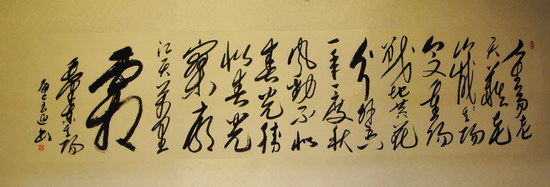 恰逢國(guó)慶和中秋“雙節(jié)日”,畫(huà)家也用新作來(lái)慶祝佳節(jié)。王建偉的紅柿子、菊花與酒,靳雪丹的松風(fēng)、明月、鳥(niǎo)語(yǔ),寫(xiě)意的豪放與工筆的抒情相得益彰。許藝城輕鎖眉頭的推敲詞句的李清照、竹石旁深情相依的毛澤東與李開(kāi)慧,劉匯茗仰天開(kāi)懷的布袋和尚,在相似的筆墨里面,你總能看到畫(huà)家對(duì)生活新的思考,對(duì)藝術(shù)新的追求。