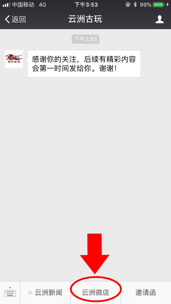 2.點(diǎn)擊公眾號(hào)菜單欄中的“云洲微店”