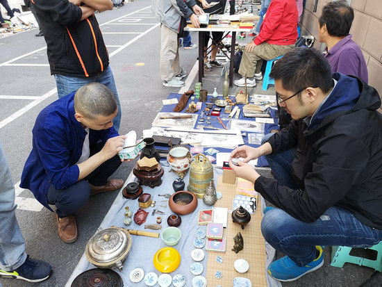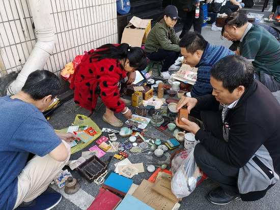 與傳統(tǒng)的周末地?cái)偛煌芩募械拈_(kāi)市時(shí)間提前至凌晨6點(diǎn)之前,其中紙制品攤位更達(dá)到了“鬼市”的時(shí)間標(biāo)準(zhǔn)。藏品范圍廣泛,有瓷片、木器、字畫(huà)、銅器、玉飾、錢幣、老郵票、舊書(shū)籍等常規(guī)類古玩雜項(xiàng),還有老舊唱片、老打字機(jī)以及不同時(shí)期的相機(jī)、手表等一些不太常見(jiàn)的物品。