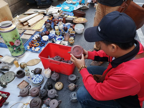 在古玩界,提起周末地?cái)?,不論藏家還是藏友們第一時(shí)間會(huì)想到云洲古玩城。確實(shí),云洲的周末地?cái)傄殉掷m(xù)舉辦十余年,從地?cái)偟囊?guī)模和數(shù)量上看,始終處于穩(wěn)定的狀態(tài)。200余個(gè)攤位,2/3以上是固定攤位,所剩不多的機(jī)動(dòng)攤位經(jīng)常出現(xiàn)剛開(kāi)始售票就售罄的情況。于是,在商戶們的強(qiáng)烈要求下,云洲古玩城結(jié)合自身實(shí)際和地?cái)偸袌?chǎng)特點(diǎn),經(jīng)過(guò)反復(fù)醞釀、斟酌后,決定增設(shè)周四露天淘寶集市。