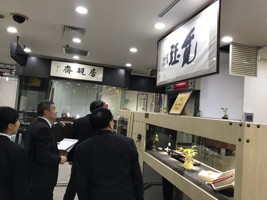 新徐匯集團(tuán)黨委書記戚振國(右二)、云洲商廈董事長周杰(右三)對云洲各樓層進(jìn)行安全巡視