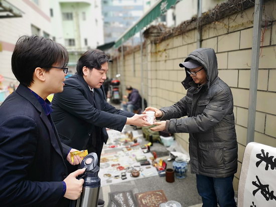 2019年1月3日,是云洲新年第一場(chǎng)周四露天淘寶集市。氣溫低回,但淘寶人的熱情不減,淘寶集市上依舊是人聲鼎沸,熱鬧非凡。為了給寒風(fēng)中忙生意的攤主們送去溫暖,市場(chǎng)部的小伙子們?yōu)樗麄兯蜕吓慕?。有些攤主在收到姜茶時(shí)開(kāi)心的說(shuō):“即使零下十度也感覺(jué)像零上十度一樣暖!”
