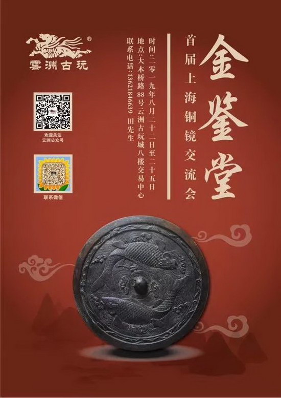 由云洲古玩城主辦、金鑒堂提供支持的首屆上海銅鏡交流會(huì)將于8月22日至25日在云洲八樓交易中心召開。