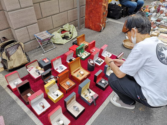 集市上人潮涌動。有精明的古董商,愛舊物的收藏老者,愛珠寶首飾的女士和淘新奇玩意兒的年輕男子......他們穿梭在一個個攤位之間,尋找心儀的藏品,與商家討價還價。