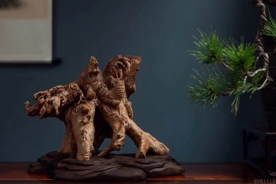 石雕和木雕是我國(guó)古老的手工技藝,歷史源遠(yuǎn)流長(zhǎng),能工巧匠們利用石頭、木材等天然的巧色及造型加以巧雕,使得作品呈現(xiàn)渾然天成的藝術(shù)效果,令人贊嘆。在福建省第五屆玉石雕刻“神藝杯”大賽中獲得金獎(jiǎng)的作品《濟(jì)公》就是巧雕的典型代表,作品選取了整塊老撾石中最明艷的紅色部分來(lái)作為其面部、肩部、手、足等外露的皮膚,漂亮的朱紅色形象的襯托出了醉酒后的濟(jì)公的神態(tài),很好的利用了石頭天然的色彩,構(gòu)圖精巧,嘆為天成。在作者精妙的刀工下,頭戴布帽,身披破洞袈裟,手拎香肉,似醉似癲的活佛濟(jì)公似在睥睨眾生,笑看紅塵,訴說(shuō)著眾人皆醉我獨(dú)醒的禪意。主辦方透露,《濟(jì)公》同時(shí)被三個(gè)買家競(jìng)價(jià),對(duì)于這個(gè)結(jié)果也是意料之中了。