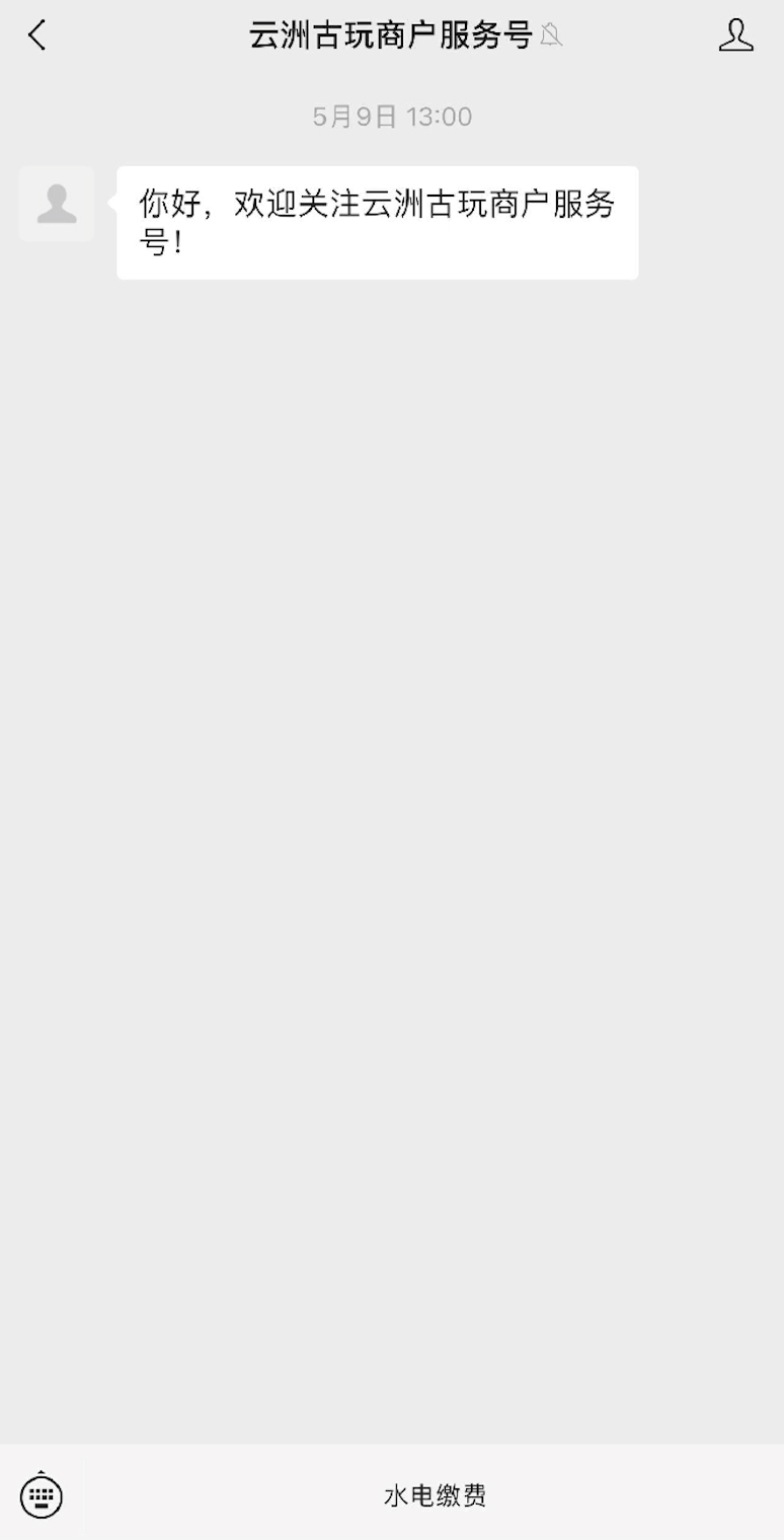 1、微信關(guān)注“云洲古玩商戶服務(wù)號”。