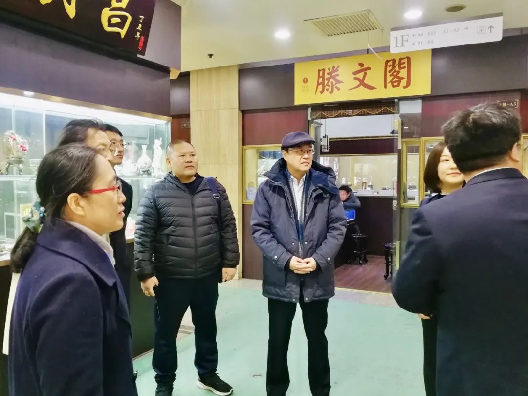 調(diào)研團隊參觀了云洲六樓郵幣卡市場、七樓理事商戶代表北石軒和八樓交易中心。在座談中,云洲古玩領(lǐng)導(dǎo)班子從管理、經(jīng)營、黨建等方面向調(diào)研團隊詳細(xì)介紹了云洲古玩。雙方還就古玩市場的未來發(fā)展方向、人才培養(yǎng)等問題交換了意見和建議。通過此次座談會,雙方增進了對彼此的了解,為進一步交流合作打下了堅實的基礎(chǔ)。