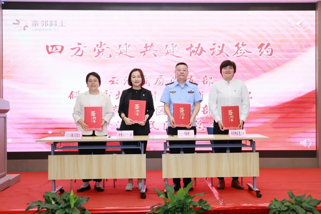 隨后,云洲商廈黨支部書(shū)記趙蕾代表支部與斜土市場(chǎng)監(jiān)督管理所黨支部、肇清街區(qū)黨支部、肇清居民區(qū)黨總支簽署四方黨建共建協(xié)議并致辭,為區(qū)域黨建發(fā)展、資源共享、活動(dòng)聯(lián)辦等深度合作按下“啟動(dòng)鍵”,為未來(lái)區(qū)域黨組織聚焦服務(wù)“新”領(lǐng)域、推動(dòng)項(xiàng)目“實(shí)”落地、提升黨建“強(qiáng)”能級(jí)、共繪區(qū)域“聚”合力架起橋梁紐帶。