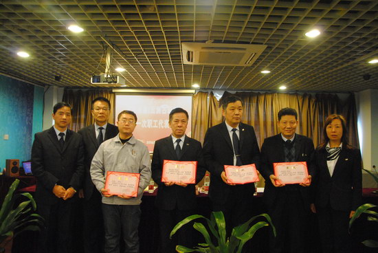 在五屆一次職代會上,總經(jīng)理吳中澤代表公司領(lǐng)導(dǎo)班子作2016年工作總結(jié)和2017年工作計劃報告,姚旗榮副總經(jīng)理作2016年度公司廠務(wù)公開報告,財務(wù)部經(jīng)理郭美英作關(guān)于2017年財務(wù)預(yù)算報告,吳中澤總經(jīng)理作2017年度工資考核方案說明,蔣蓉作2017年職工培訓(xùn)計劃報告,班子成員和部門經(jīng)理分別作述職報告。代表對領(lǐng)導(dǎo)班子及個人進(jìn)行了民主測評,對評選出的2016年下半年度星級員工進(jìn)行了測評,并投票表決了2017年度工資集體協(xié)議和經(jīng)濟(jì)指標(biāo)考核方案以及職工培訓(xùn)計劃方案。最后公司領(lǐng)導(dǎo)對獲得2016年度公司流動紅旗班組、先進(jìn)工作者、好員工、優(yōu)秀工會積極分子進(jìn)行了表彰。