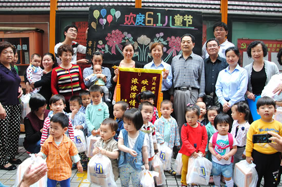 緊接著,在街道領(lǐng)導(dǎo)的帶領(lǐng)下,云洲商廈的志愿者們帶著準(zhǔn)備好的點(diǎn)心來到肇清居委會的活動室,與這里的家長和孩子共同慶祝兒童節(jié)的到來。由于事先做好安排,這里的小朋友和家長們有秩序地聚集在門外。志愿者們?yōu)槊恳晃恍∨笥褱?zhǔn)備了一份點(diǎn)心,在黨總支副書記蔣蓉的帶領(lǐng)下,商戶黨員和志愿者們紛紛將準(zhǔn)備好的點(diǎn)心派發(fā)給小朋友,孩子們用最簡單卻是最真摯的方式-----阿姨好!叔叔好!表達(dá)了衷心的感謝。