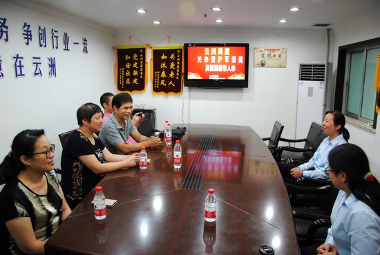9月10日下午,日暉七村張大妹老人的兒子在居委會章書記、邱主任的陪同下,向云洲商廈贈送錦旗一面。云洲商廈黨總支副書記、工會主席蔣蓉代表云洲接受錦旗,并表示一定會一如既往的關(guān)愛張大妹老人,讓老人健康快樂的頤養(yǎng)天年。