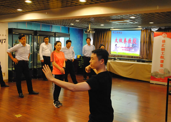 在學(xué)習(xí)太極拳活動(dòng)中,黨總支、工會(huì)主席王莉璟,總經(jīng)理吳中澤以及其他十幾名員工都積極參加了太極拳的學(xué)習(xí)。太極拳老師是吳氏太極拳第五代弟子,有很深的武術(shù)造詣。他深入淺出而又非常風(fēng)趣的講解了太極拳的原理,并進(jìn)行了示范。大家隨著他的示范做起來也是有模有樣。好幾位職工都表示對(duì)太極拳有很大的興趣,會(huì)持續(xù)學(xué)習(xí)下去。