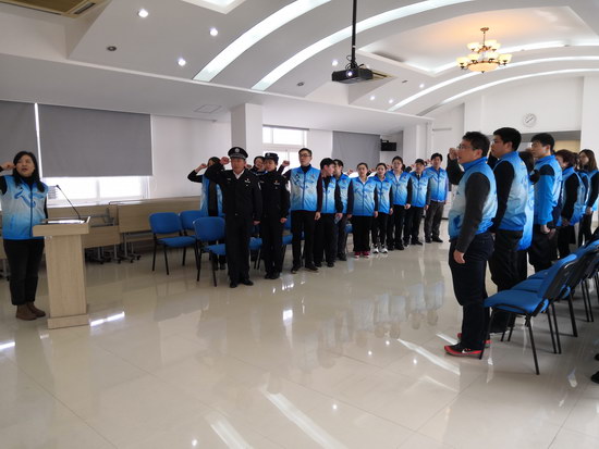 下午1:30,參與學(xué)雷鋒黨員志愿公益活動(dòng)的黨員同志們首先在社區(qū)服務(wù)中心參加宣誓儀式,重溫入黨誓詞,牢記并踐行為民服務(wù)的宗旨。