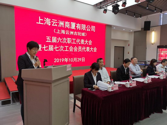 2019年10月29日下午,云洲商廈五屆六次職代會暨七屆七次工代會在公司八樓交易中心舉行,會議由黨支部副書記、工會負(fù)責(zé)人鮑紅主持,新徐匯集團副總經(jīng)理、云洲董事長周杰、云洲商廈副總經(jīng)理姚旗榮,及兩代會代表出席了會議。
