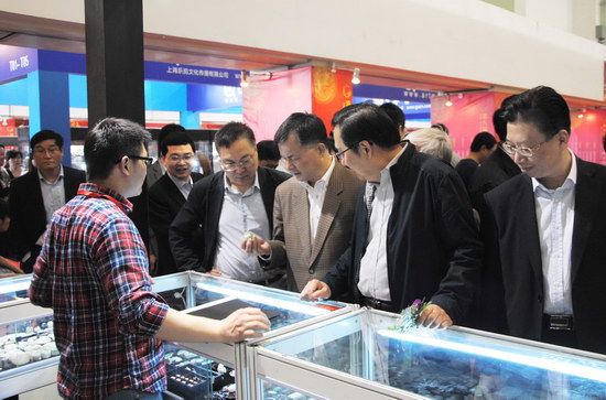 領(lǐng)導(dǎo)和嘉賓在展柜前欣賞展品