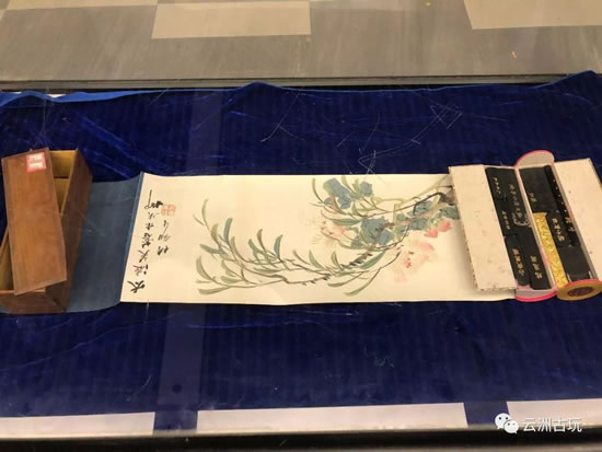 在分會場云洲古玩城,“紀(jì)念建國七十周年錢陽春文房雅韻展”展出的書畫、文房用品引來不少藏友的觀瞻。