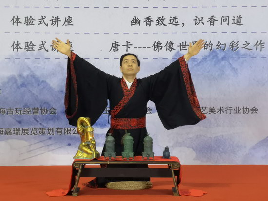 展會(huì)期間,云洲率先承擔(dān)起了作為文化傳承人的責(zé)任,分別安排了四場(chǎng)有關(guān)藝術(shù)與文化的講座。邀請(qǐng)知名教授程庸先生從他二十年的海外淘寶經(jīng)歷說(shuō)起,講述了世界各地古玩市場(chǎng)的文化以及各國(guó)的人文情懷,帶我們領(lǐng)略了一番異國(guó)文化風(fēng)情。中國(guó)的古琴、香道、唐卡作為珍貴的非物質(zhì)文化遺產(chǎn),也在此次的古博會(huì)中大放異彩,體驗(yàn)式的互動(dòng)講座讓現(xiàn)場(chǎng)觀(guān)眾在獲得理論知識(shí)的同時(shí),又從感官上對(duì)我國(guó)傳統(tǒng)文化有了更深層次的認(rèn)識(shí),講座結(jié)束后,仍然有許多觀(guān)眾不愿離去,駐足停留,回味著傳統(tǒng)文化留下的醇厚韻味。