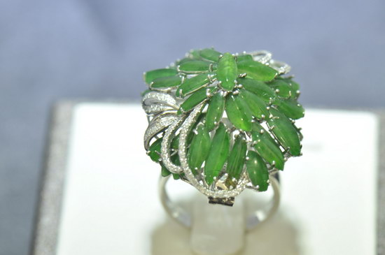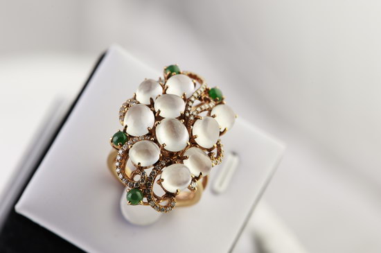 展會(huì)上展出的千余件翡翠精品,包括:高貴典雅的翡翠晚裝套裝、經(jīng)典靈動(dòng)的翡翠掛墜、別致尊貴的翡翠戒指、韻味十足的翡翠手鐲、別具靈韻的手玩件和大小擺件、散發(fā)著濃濃文化氣息的翡翠方牌及對(duì)牌等。其中更是不乏諸如“生意興隆”擺件等翡翠精品。該作品選用帶有黃翡飄藍(lán)花、紫羅蘭飄藍(lán)花的原石雕琢而成,兩種質(zhì)地融于一塊原石,這在翡翠界里是十分稀有的;工藝上則運(yùn)用巧雕、圓雕技術(shù)刻成金燦燦的如意和紫氣東來(lái)的龍頭,使整件作品栩栩如生,寓意吉祥。