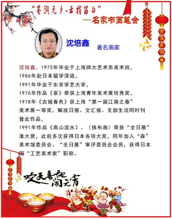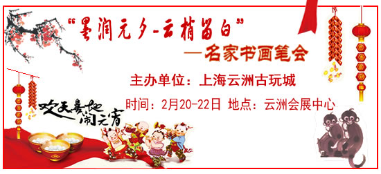 在喜迎元宵佳節(jié)即將來(lái)臨之際,上海云洲古玩城又將為申城書(shū)畫(huà)愛(ài)好者奉上文化大餐,于2月20日至2月22日在云洲八樓會(huì)展中心舉行“墨潤(rùn)元夕,云梢留白——名家書(shū)畫(huà)筆會(huì)”。